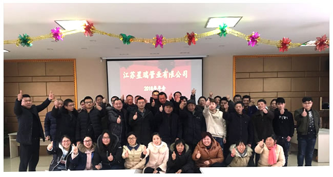 辭舊迎新之際,為展現公司日新月異、蓬勃發(fā)展的良好風(fēng)貌,增進(jìn)友誼、增強凝聚力,江蘇星瑞管業(yè)有限公司于2018年2月3號在公司三樓會(huì )議室召開(kāi)了一次具有劃時(shí)代的2018年新年年會(huì )。