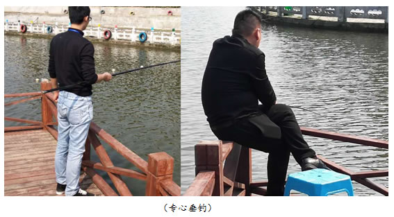 陽(yáng)光照著(zhù)波光粼粼的湖面,有的同事情不自禁地釣起了魚(yú),到了傍晚,戰果頗豐。然而,其他同事有的騎自行車(chē)、有的喝茶、有的散步,好不愜意。