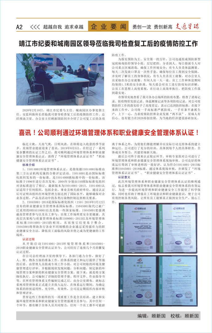 星瑞管業(yè)2020年1月份報紙——第16期
